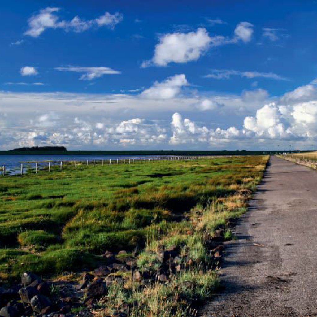 Nordstrand, einst eine Insel, liegt etwa eine „Auto-Viertelstunde“ westlich von Husum. Die heutige Halbinsel erstreckt sich über eine Fläche von etwa 50 Quadratkilometern – und ist damit halb so groß wie Sylt – und zeichnet sich durch ihre außergewöhnliche Landschaft aus: Marschland, Salzwiesen, grüne Deiche und der weite Horizont prägen das Bild. Die unberührte Natur bietet den perfekten Rahmen für einen entspannten Urlaub mit Hund.