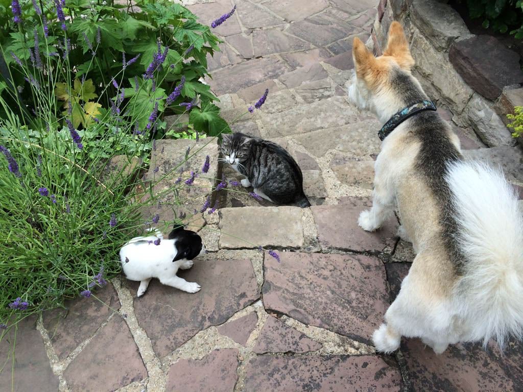 Tiger ist der Familienkater, den alle zusammen gerettet haben. Abby ist ganz klar Lillys Hund, also von unserer großen Tochter und Alma ist der Hund unserer jüngsten Tochter. Trotzdem bin ich die, die wohl am meisten macht: Ich gehe raus mit dem Rudel, stehe in der Küche, wo ich immer wieder frische Möhren ins Futter reibe und den extra leckeren Quark, den alle so sehr lieben, unters Futter hebe.
